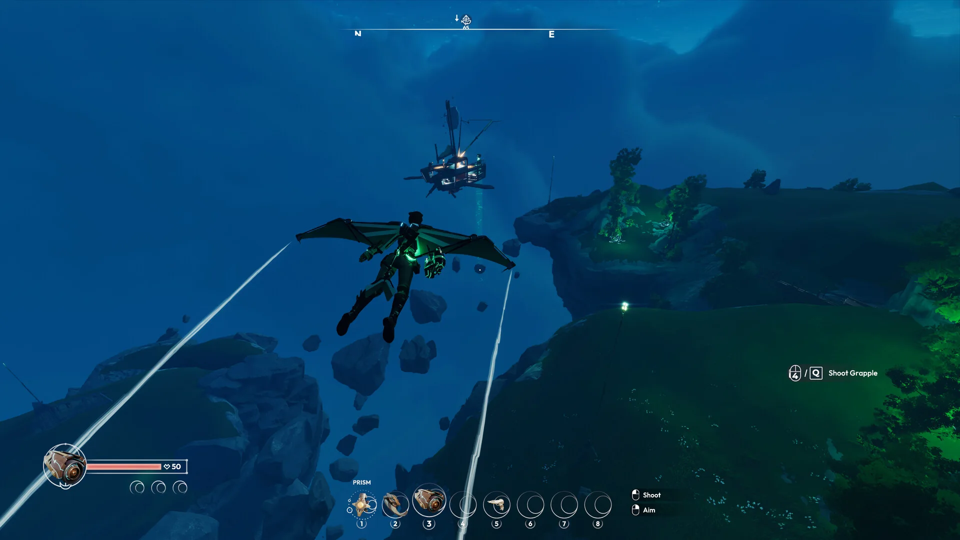 Передвижение здесь – отдельное удовольствие. Гравитационный крюк позволяет запускать себя с острова на остров, как будто вы Тарзан или кто-то из вселенной Marvel. Он цепляется почти за любую точку – скалу, обломок, дерево – и даёт свободу, которой не хватает даже в самых амбициозных играх. Можно лезть вручную, можно спустить парашют, но настоящий кайф – в движении по воздуху: рывок, полёт, приземление – и снова вперёд. А когда поднадоест прыгать, стройте дирижабль. Каждая деталь – от двигателей до парусов – настраивается вами. Хотите боевую платформу с пушками? Или красивый корабль для прогулок? Это ваш воздушный дом.