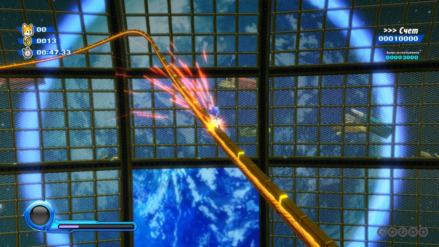 Ключ к успеху – способности Виспов, которые временно трансформируют Соника в лазер, шар-штык, ракету или даже призрака. Каждая форма открывает новые пути и решает головоломки, добавляя разнообразия. Правда, не все они одинаково удачны: например, изумрудный Висп замедляет движение до черепашьих скоростей ради прохождения сквозь стены, что нарушает ритм. Зато циановый и розовый Виспы – чистый адреналин: вы превращаетесь в луч света или сверкающий шип, мчащийся по потолкам и стенам. И хотя некоторые уровни слишком короткие или сырые, большинство заряжают энергией и желанием пройти быстрее и лучше.