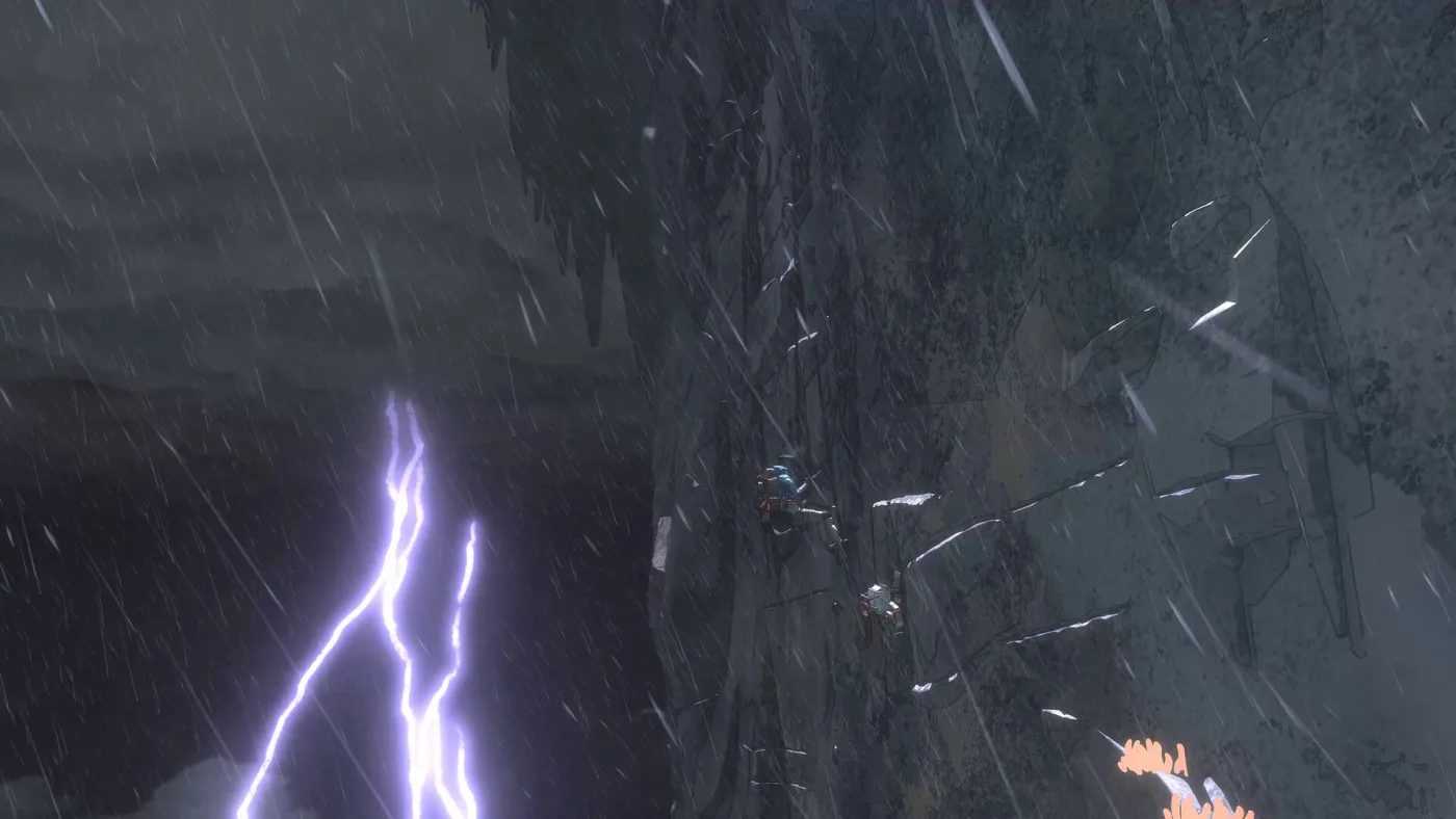 За пределами скал – жизнь. В промежутках между восхождениями вы разбиваете бивак: варите лапшу, поправляете снаряжение, отдыхаете под звёздным небом. Голод, жажда, износ крючьев – всё требует внимания. Вы можете собирать воду у родника, находить припасы в укромных расщелинах, планировать путь заранее, чтобы не застрять в темноте. И да, лучше не лезть ночью – свет фонарика слаб, а ошибка в полной темноте слишком дорога. Зато утром, когда солнце касается вершин, виды захватывают дух – и вы понимаете, ради чего это всё.