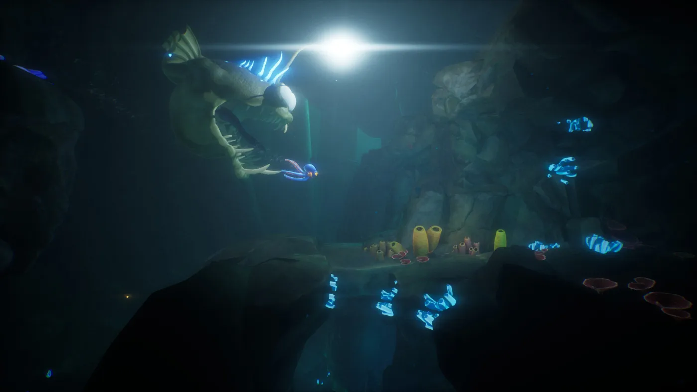 Сделана игра в ярком мультяшном стиле. Дарвин очень живо анимирован, у него забавные движения щупалец и выразительные глаза. Вокруг полно мелких шуток и отсылок, от классики вроде Metal Gear до просто смешных сцен с пришельцами. Получается лёгкое и довольно короткое приключение часов на пять.
